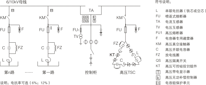 高壓TSC動(dòng)態(tài)無功補(bǔ)償裝置由主控系統(tǒng)、光纖觸發(fā)電路、高壓晶閘管閥組、脈沖變壓器、電容器、電抗器、保護(hù)單元等組成,核心原理是通過主控系統(tǒng)對(duì)系統(tǒng)運(yùn)行參數(shù)進(jìn)行檢測(cè)、分析、判斷、輸出控制指令激活光纖觸發(fā)電路,再由觸發(fā)系統(tǒng)控制晶閘管閥組的快速導(dǎo)通與開斷,進(jìn)而實(shí)現(xiàn)電容器組的投入和切除,使系統(tǒng)功率因數(shù)穩(wěn)定在設(shè)定值范圍內(nèi)。閥組投切采用過零投切方式,響應(yīng)時(shí)間在20ms以內(nèi),投切過程無涌流、沖擊,能快速跟蹤補(bǔ)償系統(tǒng)所需的無功電流。